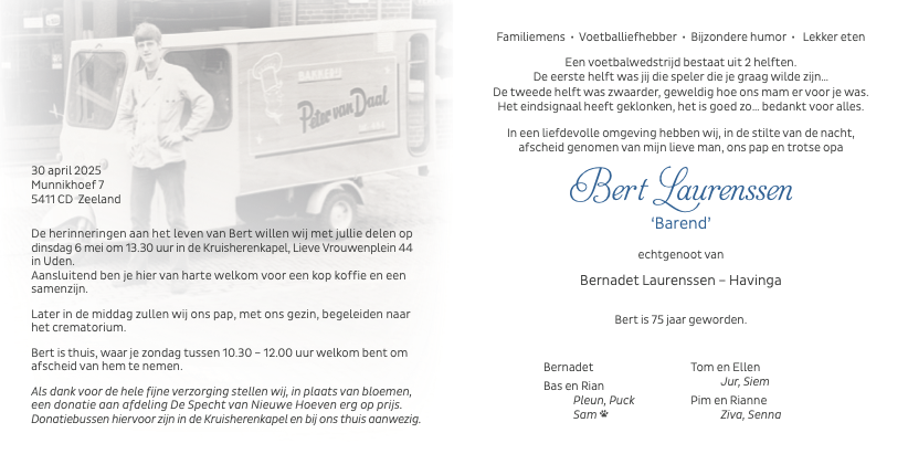 Klik hier voor de rouwkaart van Bert Laurenssen