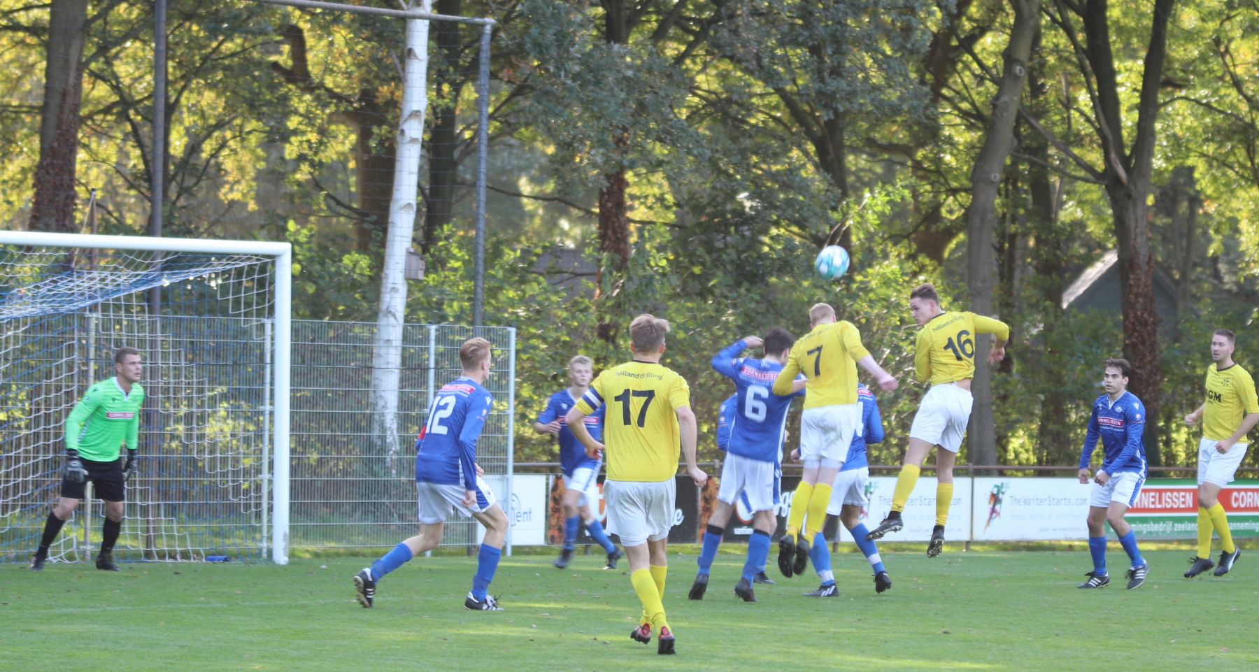 De tweede grote kans komt voort uit een vrije trap die bij de tweede paal terecht komt en een speler van HBV de bal in het zijnet van de goal volleert. Hierdoor blijft het 0-0 en gaan beide teams met de brilstand op het scorebord de rust in.