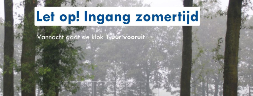 Vannacht om 02:00u gaat de zomertijd in. Dit betekent dat de klok één uur vooruit wordt gezet naar 03:00 uur. Houd er rekening mee dat wedstrijden daardoor een uur eerder starten volgens de klok.
