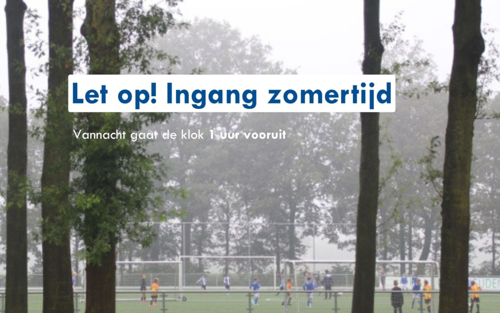 Vannacht om 02:00u gaat de zomertijd in. Dit betekent dat de klok één uur vooruit wordt gezet naar 03:00 uur. Houd er rekening mee dat wedstrijden daardoor een uur eerder starten volgens de klok.