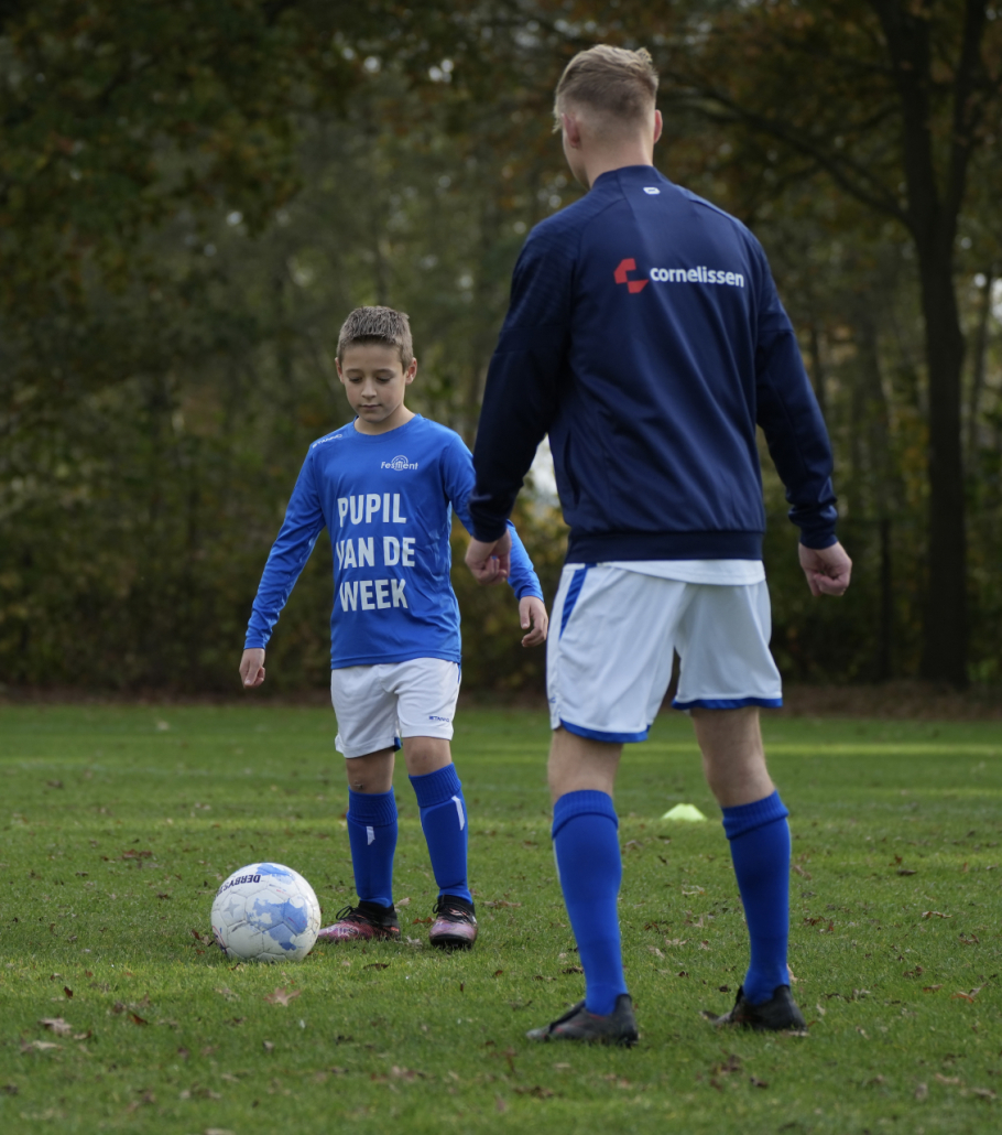 Net voordat de wedstrijd begon, mocht ik bij de scheidsrechter het muntje opgooien. Toen dribbelde ik vanaf de middellijn naar de keeper van Volkel en scoorde!
