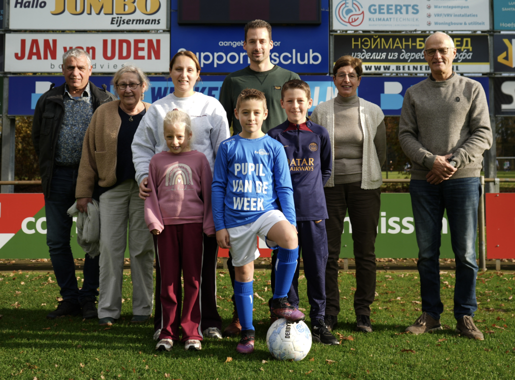 Na het omkleden en wat drinken, gingen we foto’s maken op het grote hoofdveld. Papa, mama, Tim en Wies mochten ook mee op de foto. Daarna alle opa’s en oma’s ook nog.